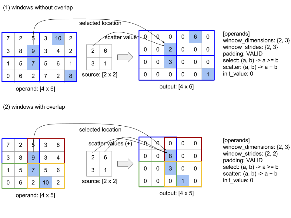 צורת הפלט היא צורת הקלט עם all_gather_dimension שהוגדלה פי shard_count. לדוגמה, אם יש שני עותקים והאופרנד הוא [1.0, 2.5] ו-[3.0, 5.25] בהתאמה בשני העותקים, ערך הפלט מהפעולה הזו שבה all_gather_dim הוא 0 יהיה [1.0, 2.5, 3.0,5.25] בשני העותקים.